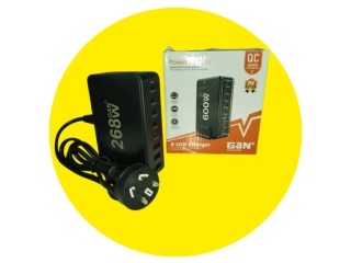 La estación de carga GaN YFY-IQ42 268W es un cargador de escritorio potente y compacto que utiliza tecnología de Nitruro de Galio (GaN) para carga rápida, ofreciendo 8 puertos (5 USB-C y 3 USB-A) para alimentar simultáneamente múltiples dispositivos como laptops, tablets y smartphones, con protecciones de seguridad integradas y alta eficiencia energética, ideal para oficinas y hogares con muchos gadgets.