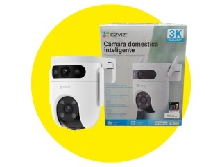 La cámara EZVIZ H9c 3K de doble lente (5MP + 5MP) ofrece protección exterior inigualable con cobertura 360 mediante lentes duales (fijo superior y motorizado inferior). Graba en alta resolución 3K (2880 1620 px), con visión nocturna a color, detección de personas/vehículos por IA, seguimiento automático y sirena con luces estroboscópicas